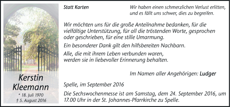 Hier finden Sie alle Traueranzeigen aus der Zeitung, die bisher für Kerstin Keemann erschienen sind. Weitere Traueranzeigen, die in der Zeitung erscheinen, werden hier ebenfalls aufgelistet