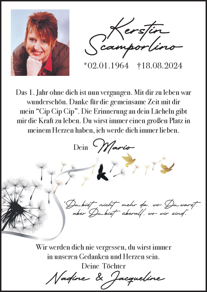 Hier finden Sie alle Traueranzeigen aus der Zeitung, die bisher für Kerstin Scampo erschienen sind. Weitere Traueranzeigen, die in der Zeitung erscheinen, werden hier ebenfalls aufgelistet