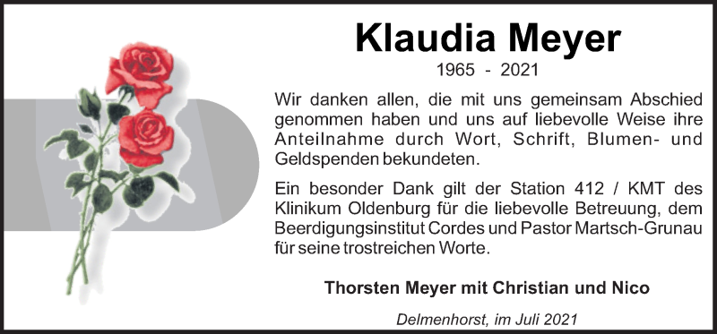 Hier finden Sie alle Traueranzeigen aus der Zeitung, die bisher für Klaudia Meyer erschienen sind. Weitere Traueranzeigen, die in der Zeitung erscheinen, werden hier ebenfalls aufgelistet