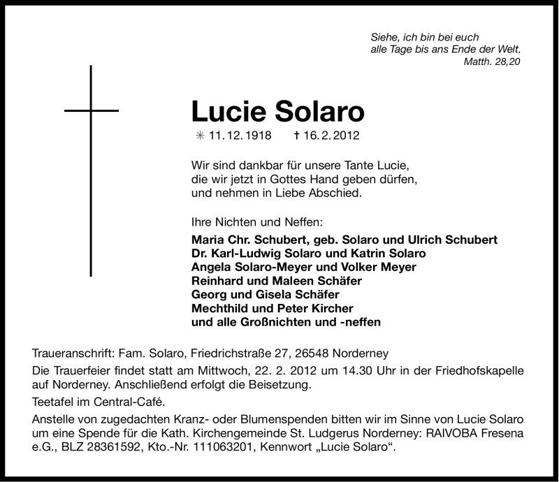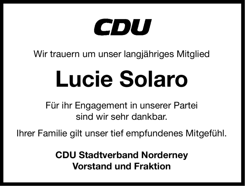 Hier finden Sie alle Traueranzeigen aus der Zeitung, die bisher für Lucie Solaro erschienen sind. Weitere Traueranzeigen, die in der Zeitung erscheinen, werden hier ebenfalls aufgelistet