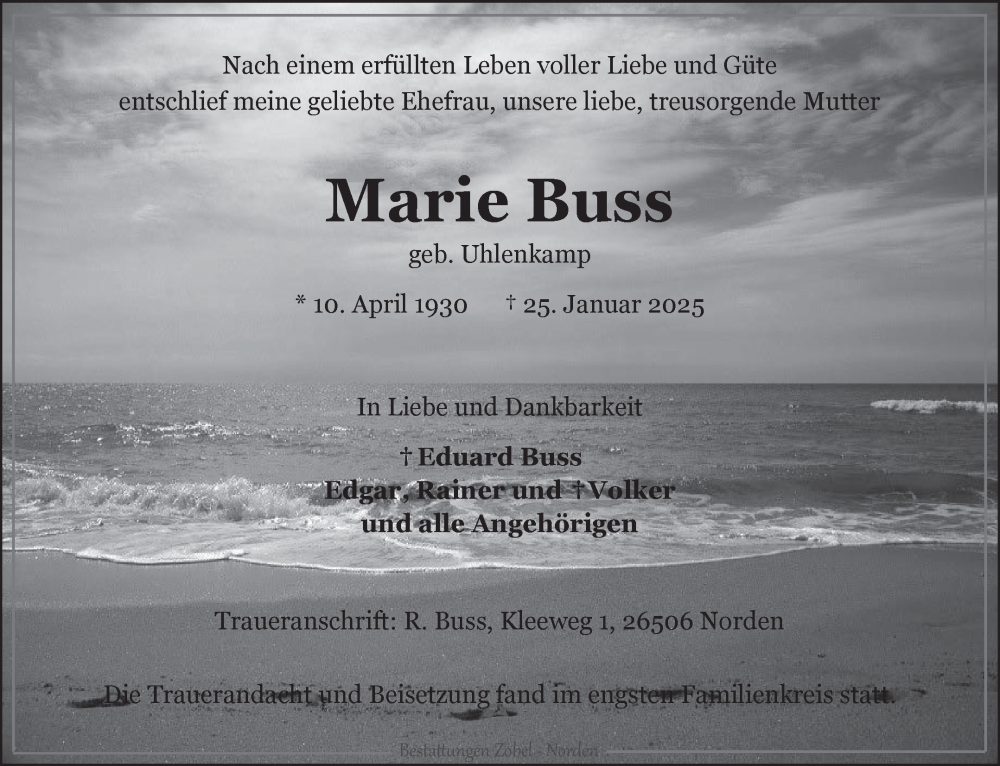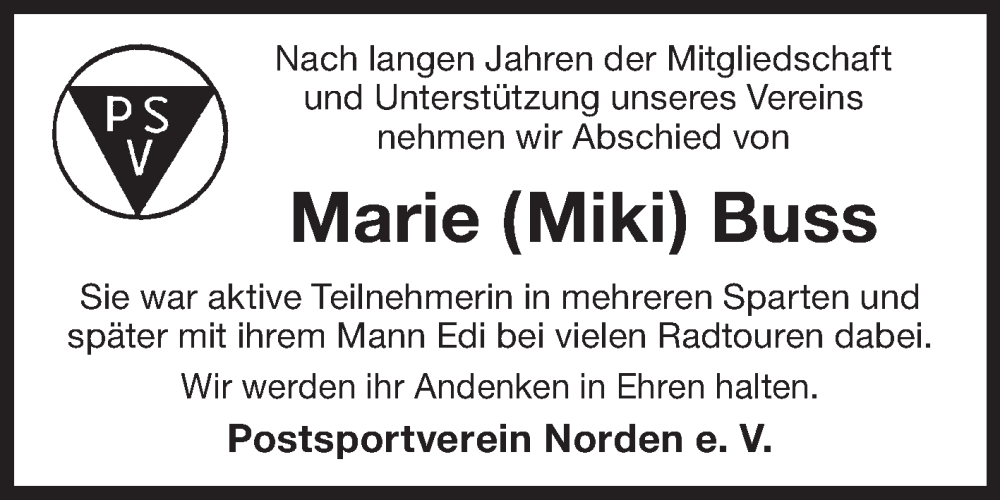 Hier finden Sie alle Traueranzeigen aus der Zeitung, die bisher für Marie Buss erschienen sind. Weitere Traueranzeigen, die in der Zeitung erscheinen, werden hier ebenfalls aufgelistet