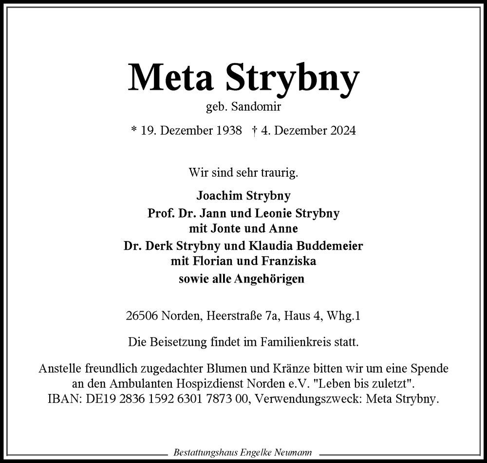 Hier finden Sie alle Traueranzeigen aus der Zeitung, die bisher für Meta Strybny erschienen sind. Weitere Traueranzeigen, die in der Zeitung erscheinen, werden hier ebenfalls aufgelistet