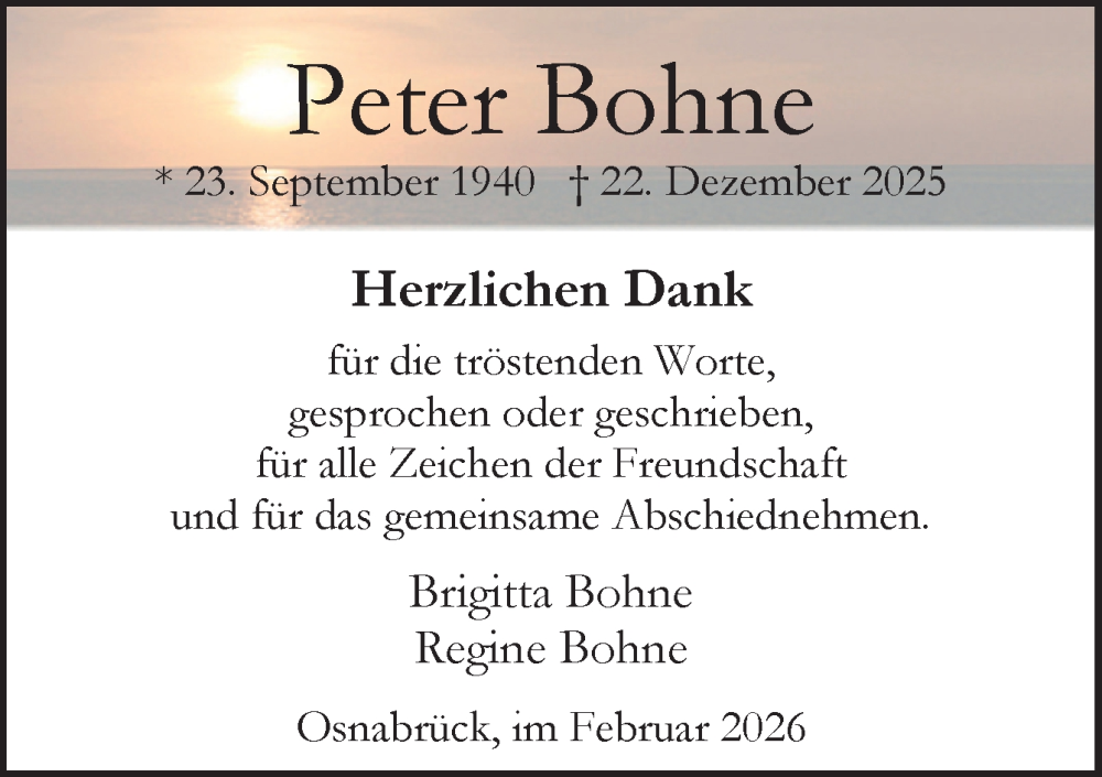 Hier finden Sie alle Traueranzeigen aus der Zeitung, die bisher für Peter Bohne erschienen sind. Weitere Traueranzeigen, die in der Zeitung erscheinen, werden hier ebenfalls aufgelistet
