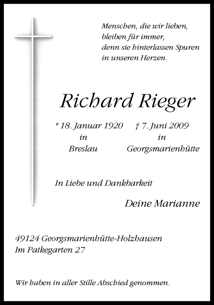 Hier finden Sie alle Traueranzeigen aus der Zeitung, die bisher für Richard Rieger erschienen sind. Weitere Traueranzeigen, die in der Zeitung erscheinen, werden hier ebenfalls aufgelistet