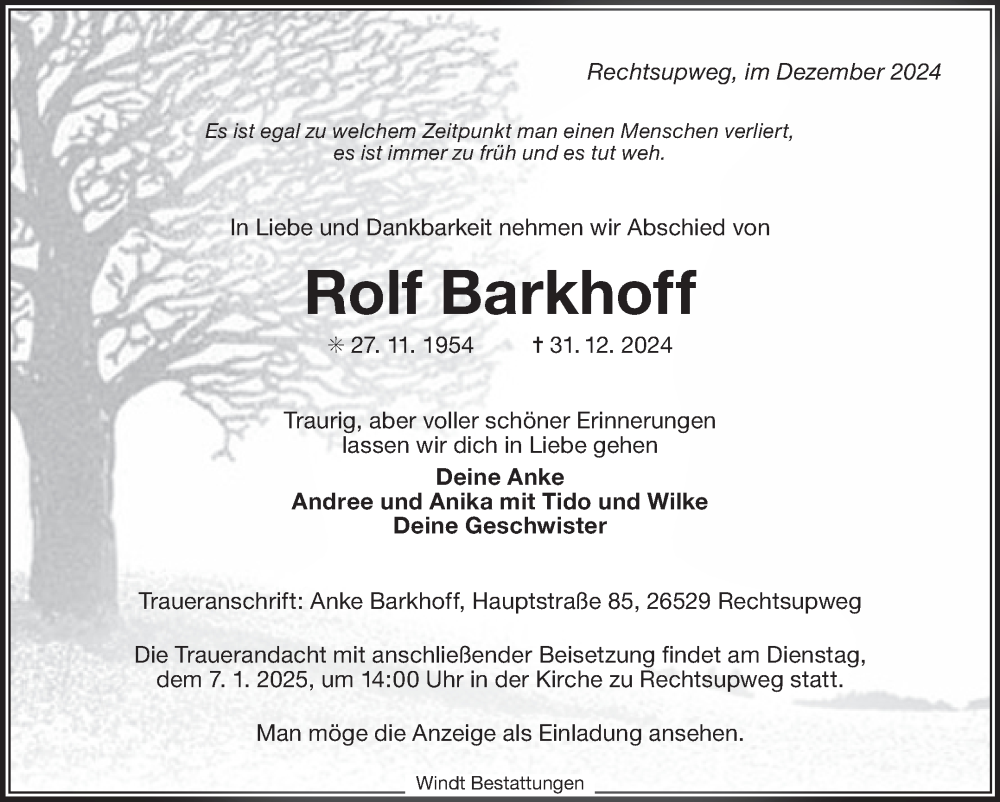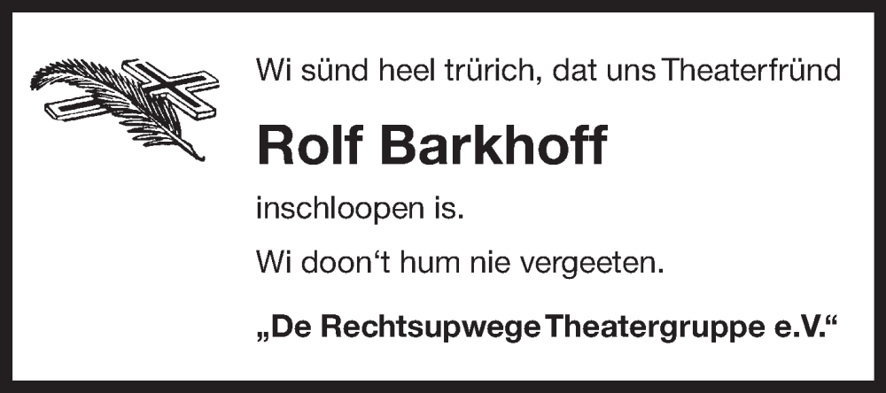 Hier finden Sie alle Traueranzeigen aus der Zeitung, die bisher für Rolf Barkhoff erschienen sind. Weitere Traueranzeigen, die in der Zeitung erscheinen, werden hier ebenfalls aufgelistet
