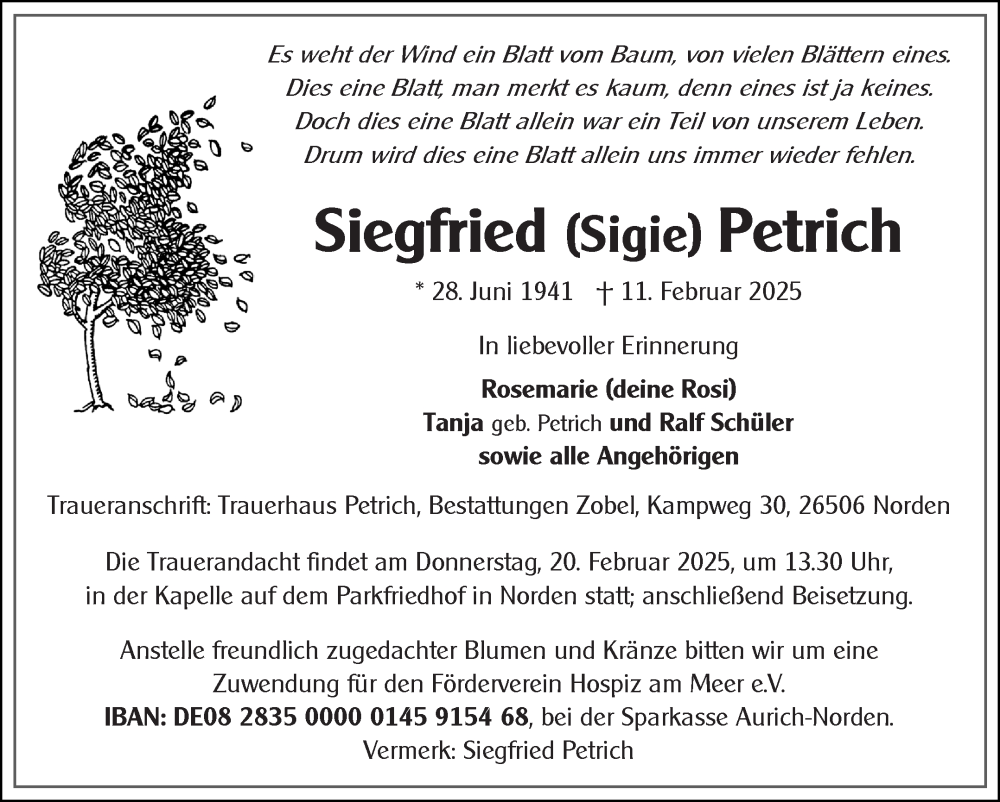 Hier finden Sie alle Traueranzeigen aus der Zeitung, die bisher für Siegfried Petrich erschienen sind. Weitere Traueranzeigen, die in der Zeitung erscheinen, werden hier ebenfalls aufgelistet