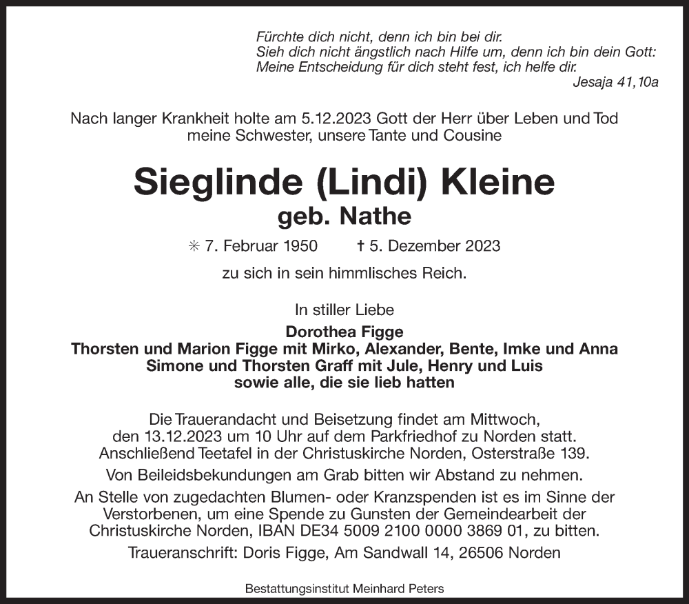 Hier finden Sie alle Traueranzeigen aus der Zeitung, die bisher für Sieglinde Kleine erschienen sind. Weitere Traueranzeigen, die in der Zeitung erscheinen, werden hier ebenfalls aufgelistet