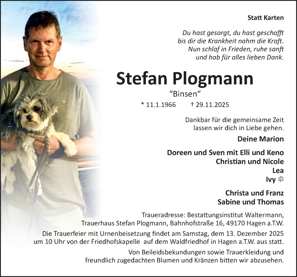 Hier finden Sie alle Traueranzeigen aus der Zeitung, die bisher für Stefan Plogmann erschienen sind. Weitere Traueranzeigen, die in der Zeitung erscheinen, werden hier ebenfalls aufgelistet