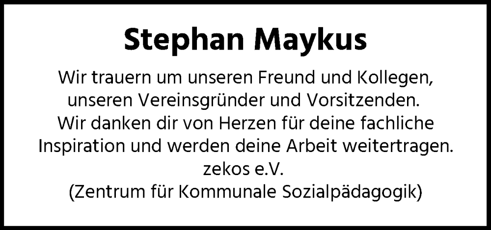 Hier finden Sie alle Traueranzeigen aus der Zeitung, die bisher für Stephan Maykus erschienen sind. Weitere Traueranzeigen, die in der Zeitung erscheinen, werden hier ebenfalls aufgelistet