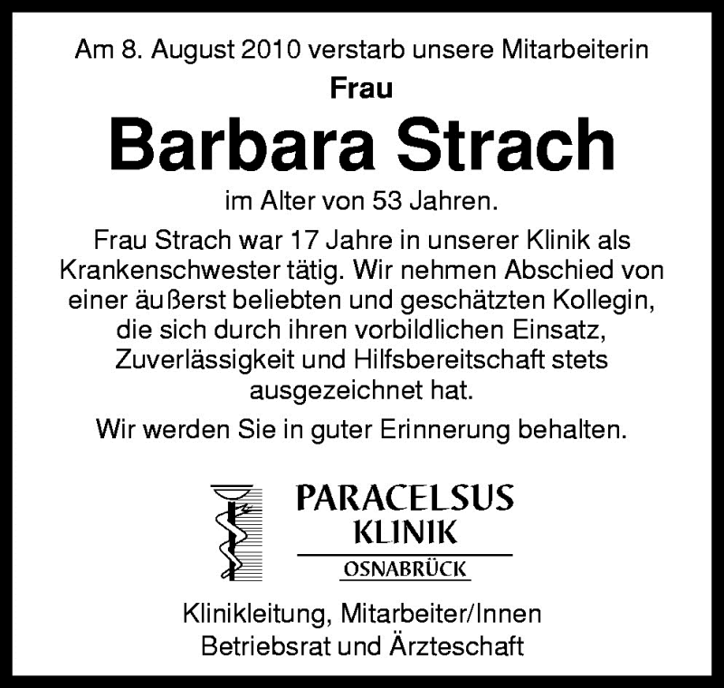 Hier finden Sie alle Traueranzeigen aus der Zeitung, die bisher für Barbara Strach erschienen sind. Weitere Traueranzeigen, die in der Zeitung erscheinen, werden hier ebenfalls aufgelistet