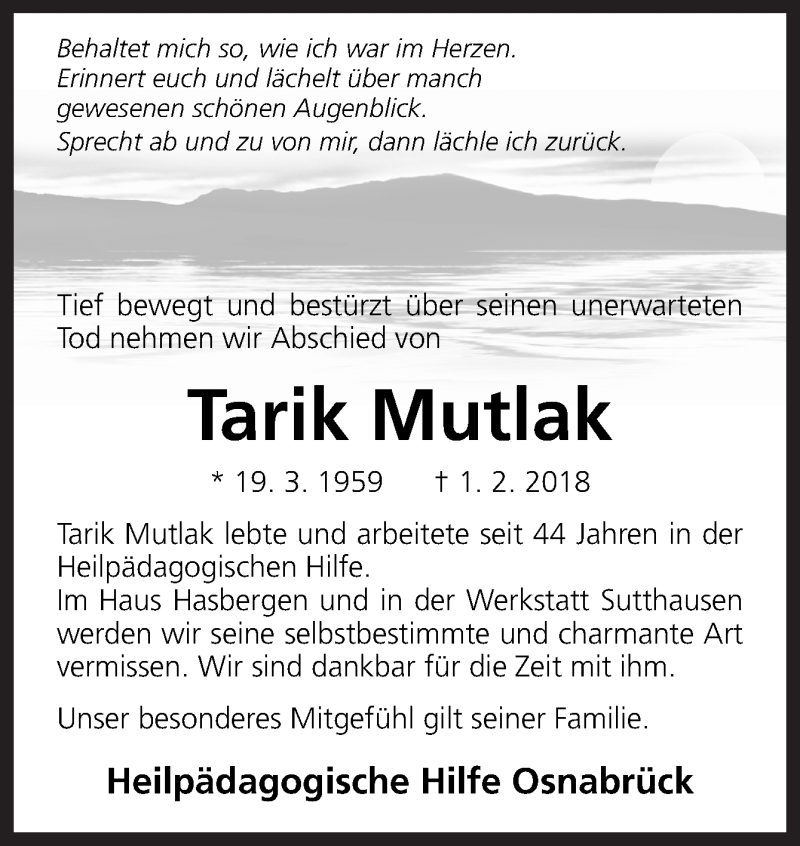 Hier finden Sie alle Traueranzeigen aus der Zeitung, die bisher für Tarik Mutlak erschienen sind. Weitere Traueranzeigen, die in der Zeitung erscheinen, werden hier ebenfalls aufgelistet