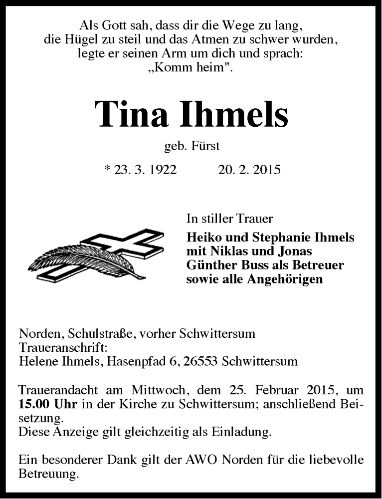 Hier finden Sie alle Traueranzeigen aus der Zeitung, die bisher für Tina Ihmels erschienen sind. Weitere Traueranzeigen, die in der Zeitung erscheinen, werden hier ebenfalls aufgelistet