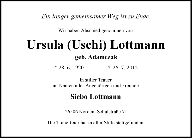 Hier finden Sie alle Traueranzeigen aus der Zeitung, die bisher für Ursula Lottmann erschienen sind. Weitere Traueranzeigen, die in der Zeitung erscheinen, werden hier ebenfalls aufgelistet
