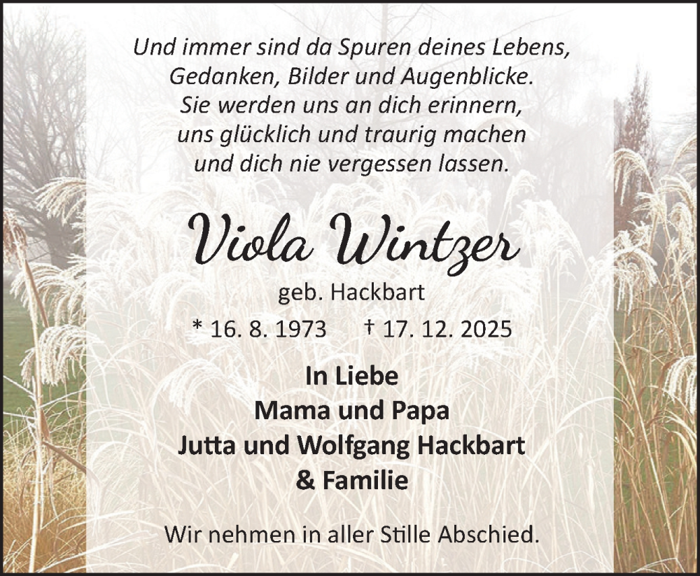 Hier finden Sie alle Traueranzeigen aus der Zeitung, die bisher für Viola Wintzer erschienen sind. Weitere Traueranzeigen, die in der Zeitung erscheinen, werden hier ebenfalls aufgelistet