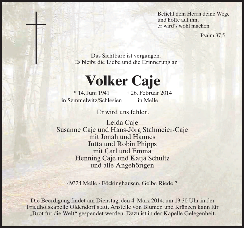 Hier finden Sie alle Traueranzeigen aus der Zeitung, die bisher für Volker Caje erschienen sind. Weitere Traueranzeigen, die in der Zeitung erscheinen, werden hier ebenfalls aufgelistet