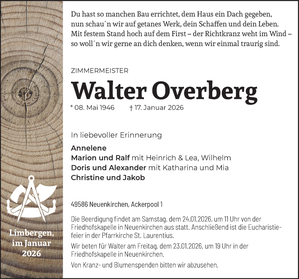 Hier finden Sie alle Traueranzeigen aus der Zeitung, die bisher für Walter Overberg erschienen sind. Weitere Traueranzeigen, die in der Zeitung erscheinen, werden hier ebenfalls aufgelistet