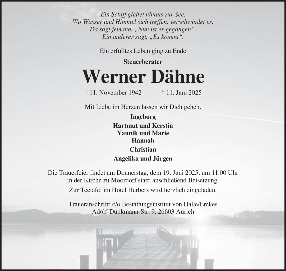 Hier finden Sie alle Traueranzeigen aus der Zeitung, die bisher für Werner Dähne erschienen sind. Weitere Traueranzeigen, die in der Zeitung erscheinen, werden hier ebenfalls aufgelistet