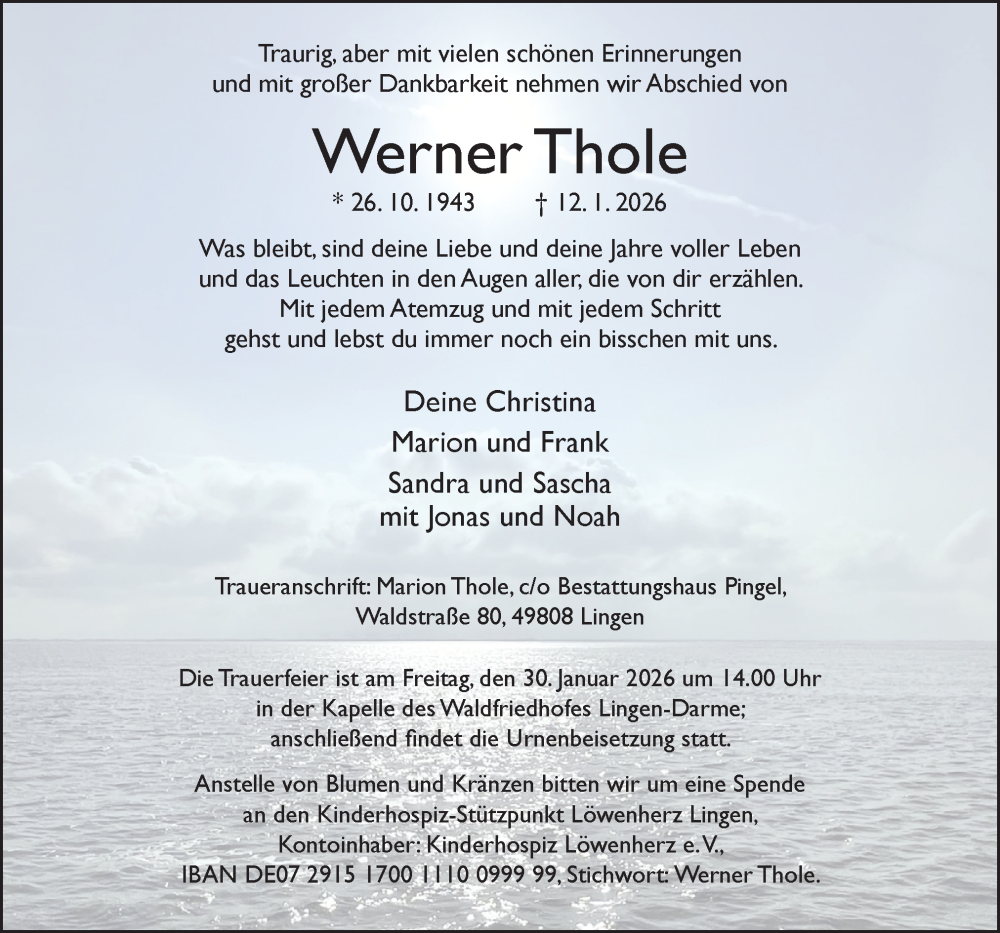 Hier finden Sie alle Traueranzeigen aus der Zeitung, die bisher für Werner Thole erschienen sind. Weitere Traueranzeigen, die in der Zeitung erscheinen, werden hier ebenfalls aufgelistet