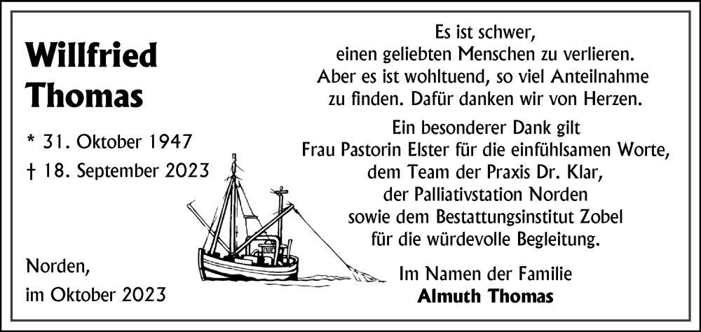 Hier finden Sie alle Traueranzeigen aus der Zeitung, die bisher für Willfried Thomas erschienen sind. Weitere Traueranzeigen, die in der Zeitung erscheinen, werden hier ebenfalls aufgelistet