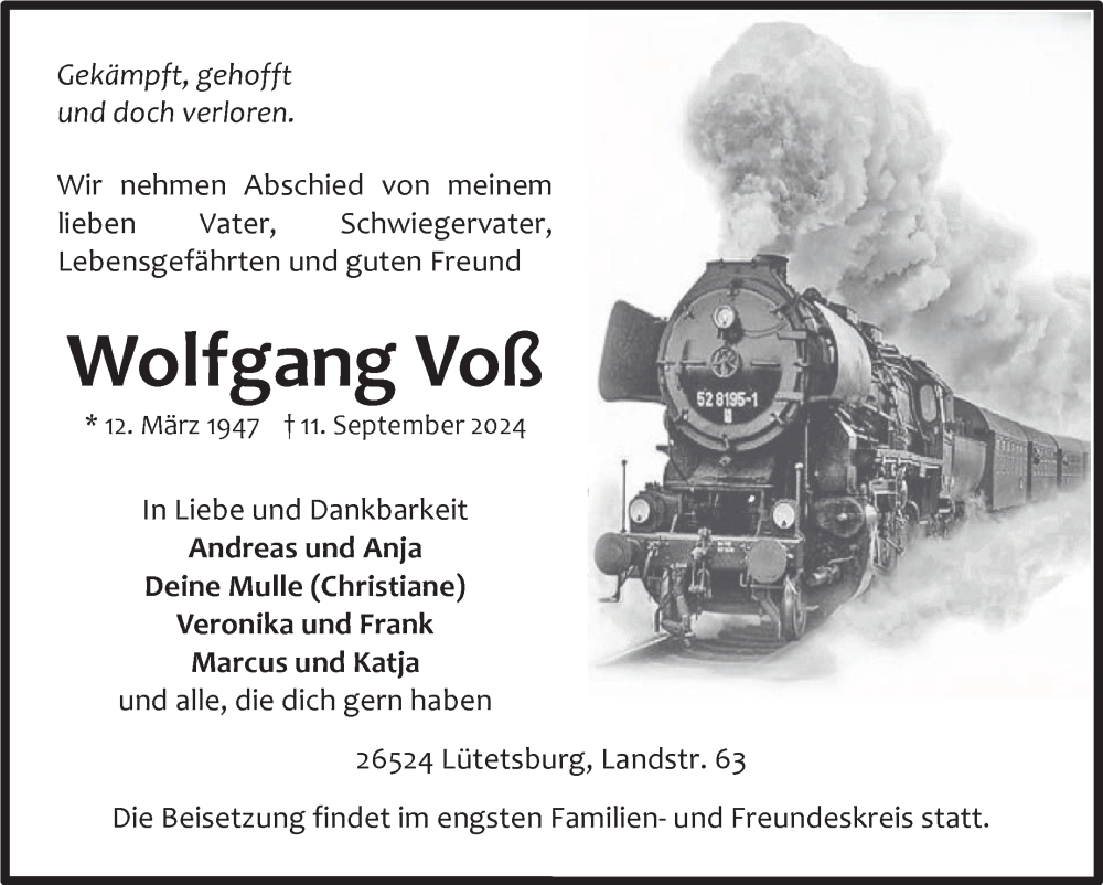 Hier finden Sie alle Traueranzeigen aus der Zeitung, die bisher für Wolfgang Voß erschienen sind. Weitere Traueranzeigen, die in der Zeitung erscheinen, werden hier ebenfalls aufgelistet
